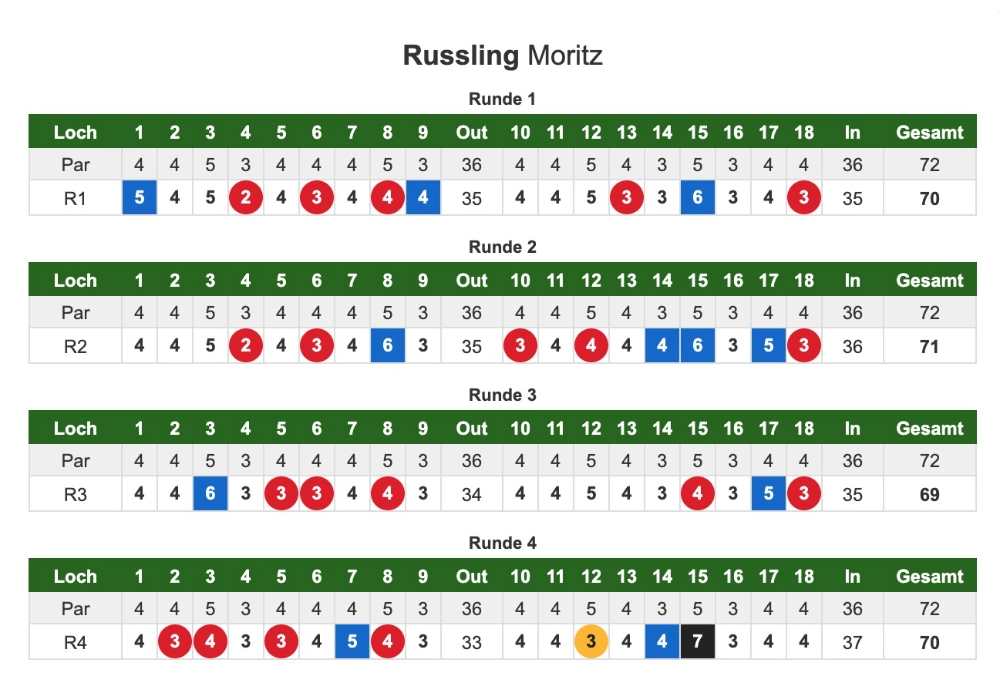 Meine erste Runde beendete ich mit 70 Schlägen (-2), womit ich mir für die kommenden Tage eine gute Ausgangsposition geschaffen hatte. So ging ich mit einem guten Gefühl in die nächsten Runden, die ich mit 71 und 69 Schlägen bestritt. Nach drei Tagen lag ich in Summe sechs unter Par und somit auf Kurs „TOP3“.